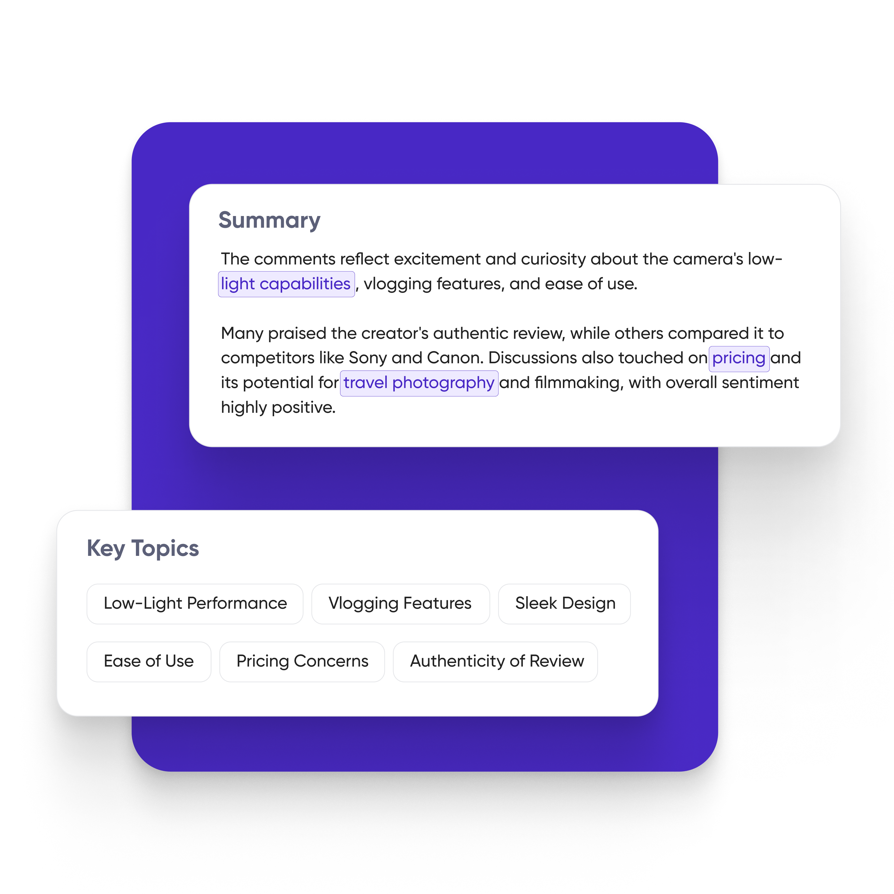 From influencer marketing to social intelligence, Siftsy provides crucial insights from the comments.